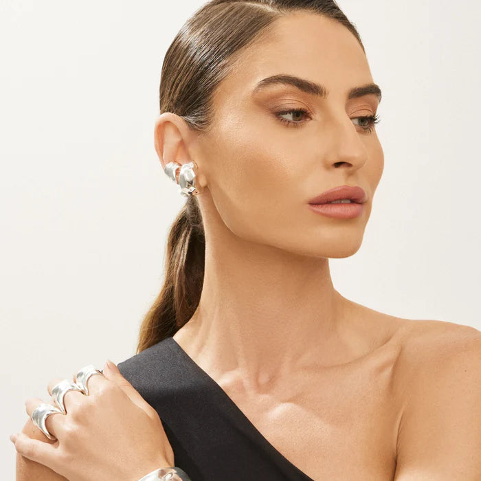 Inspired by the sea waves, in the movement of the waves. Available in gold and silver plating.